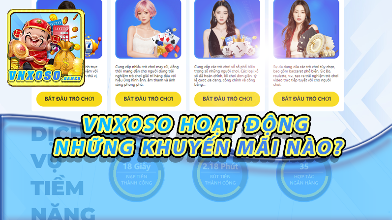 Vnxoso luôn cập nhật các chương trình khuyến mãi và ưu đãi hấp dẫn cho người chơi, từ các khoản tiền thưởng đăng ký, hoàn trả tiền cược, đến các giải thưởng lớn trong các trò chơi casino. Đặc biệt, Vnxoso cũng có chương trình VIP dành cho những khách hàng thân thiết, mang đến cho họ nhiều quyền lợi và ưu đãi đặc biệt.
