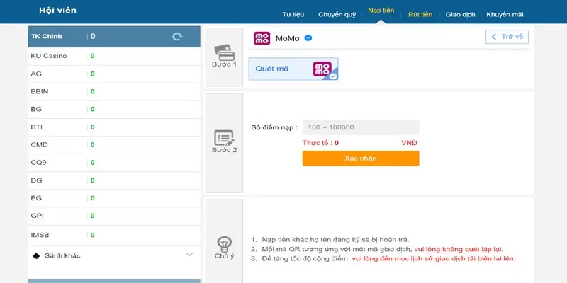 Nạp tiền thông qua Momo mang lại sự thuận tiện, tốc độ và tiết kiệm thời gian đáng kể cho người tham gia. Quy trình chi tiết của chỉ dẫn nạp tiền bao gồm: